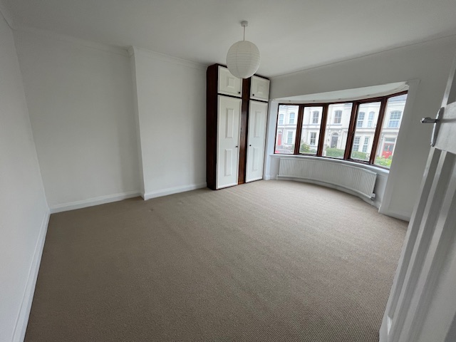 > Front Aspect Double Bedroom with Carpet Flooring, Built-in Storage and Beautiful Arched Window