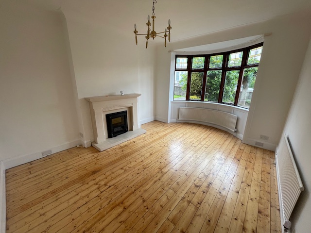 > Spacious Front Lounge with Original Flooring, Arched Front Window and Marble Surround with Electric Fire Inset
