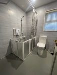 Stylish Adapted White Bathroom Suite with Large Walk-in Electric Shower Unit