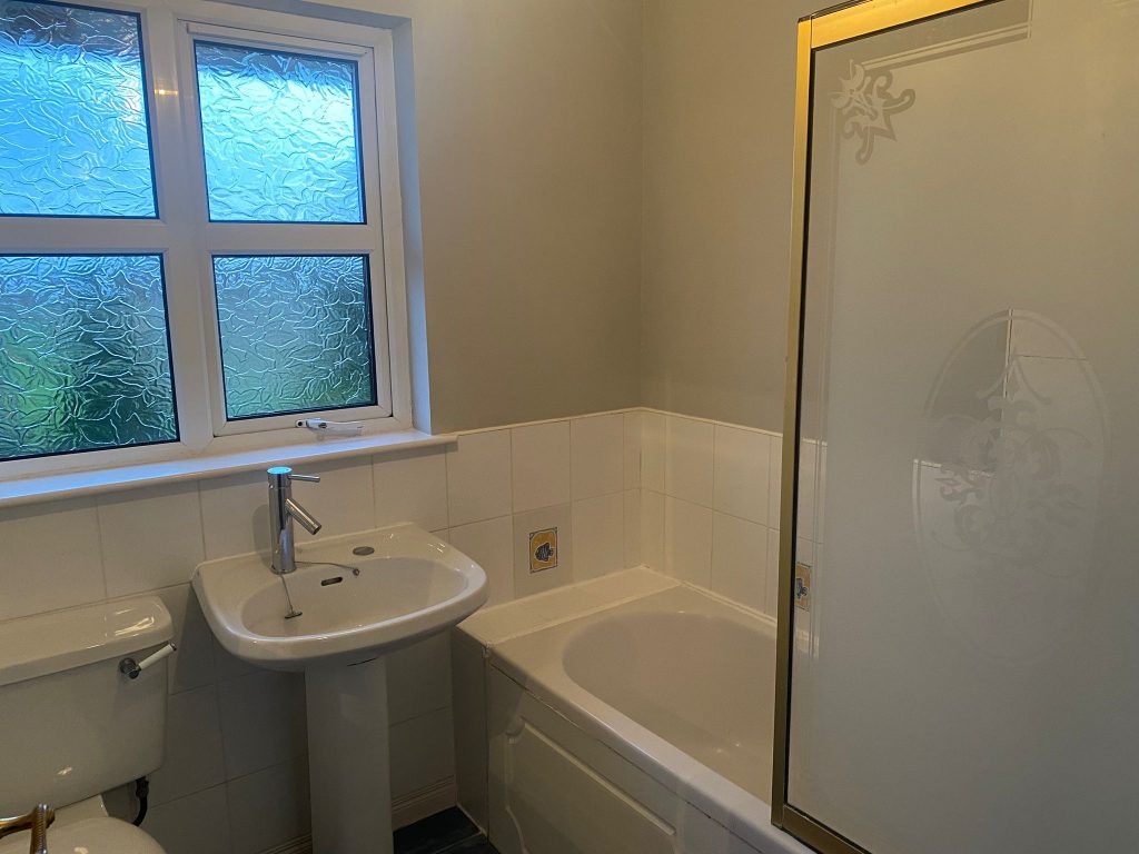 Stylish Partially Tiled Bathroom Suite with Mains Shower over the bath