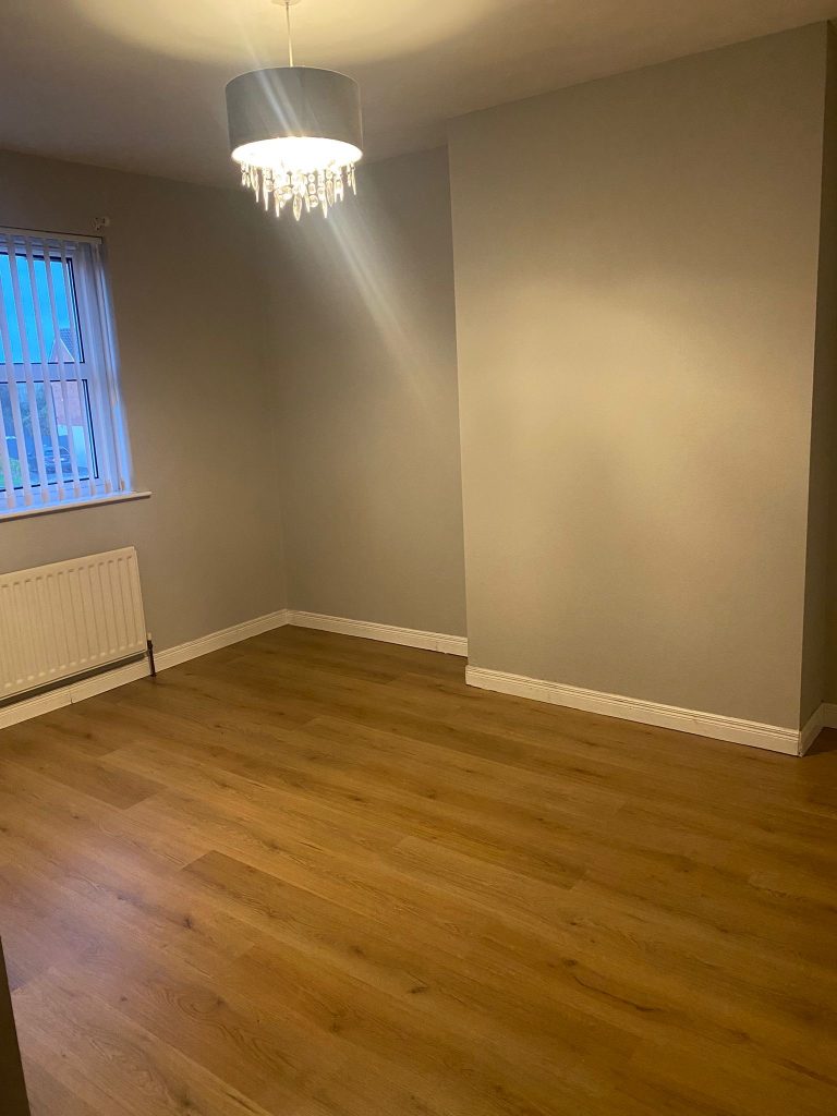 Spacious Living Room with Laminate Flooring and Feature Open Fire with Mahoganny Surround and Marble effect Hearth