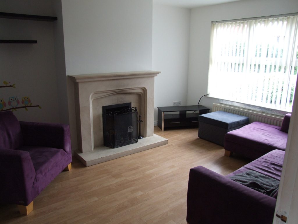 Spacious Living Room with Laminate Flooring and Feature Open Fire with Stone Surround