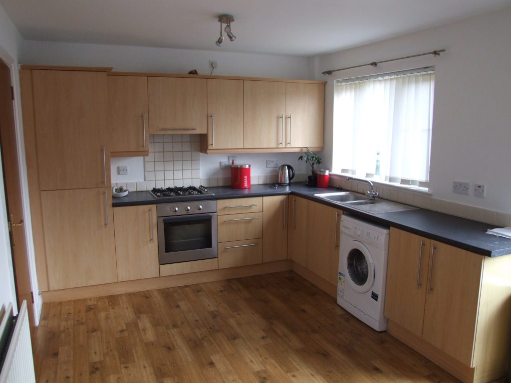 Modern Pine Fitted Style Kitchen with High & Low Units, Wood Effect Vinyl Flooring and Integrated Appliances including: