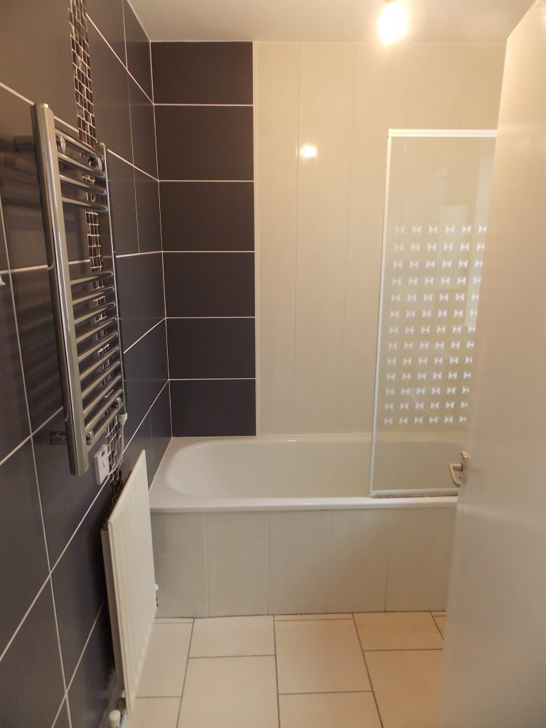 Downstairs Tiled Bathroom Suite with Mains Shower over the Bath
