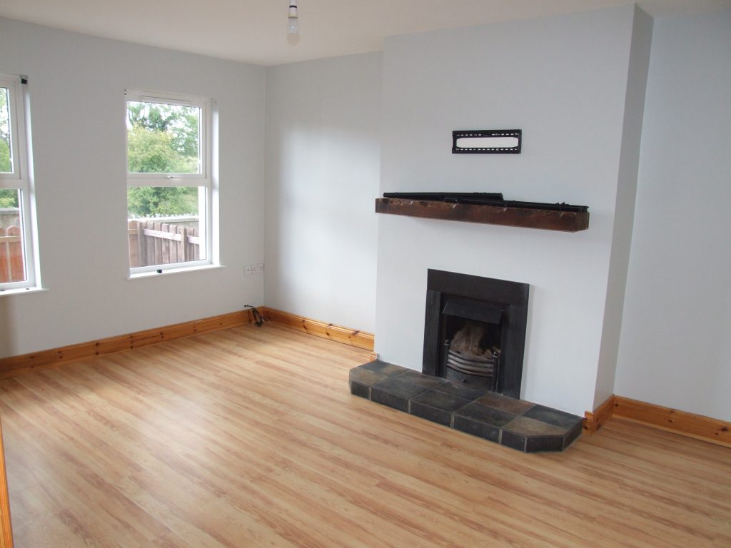 Spacious Living Room with Laminate Flooring, Feature Open Fire with Tiled Hearth & Wooden Sleeper Mantle